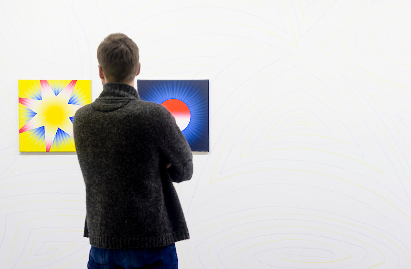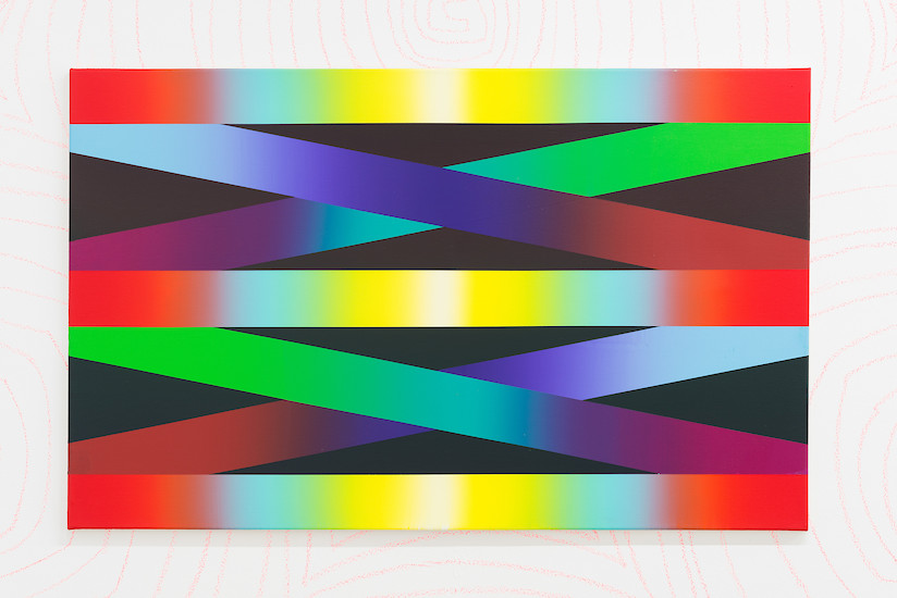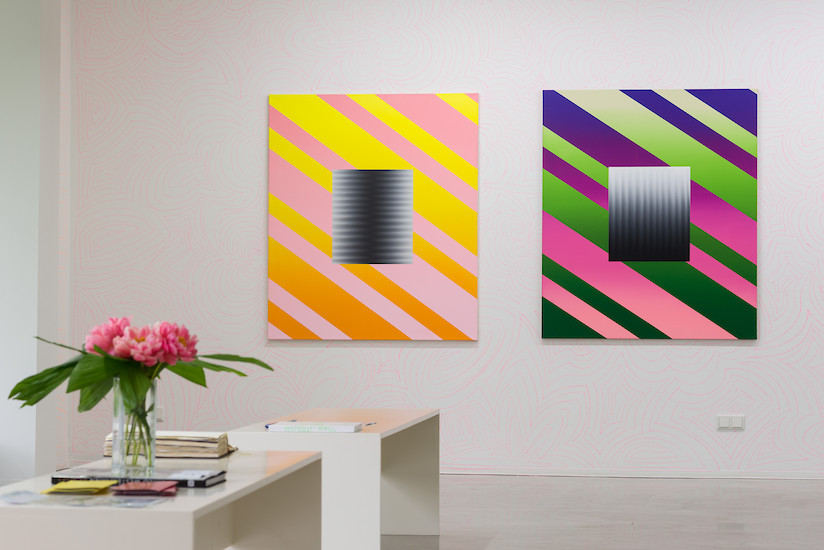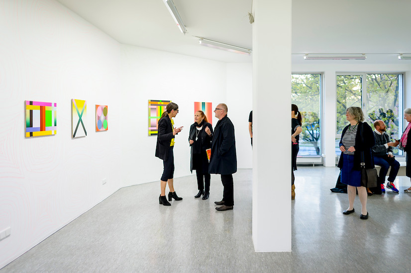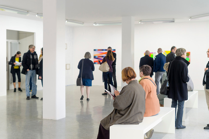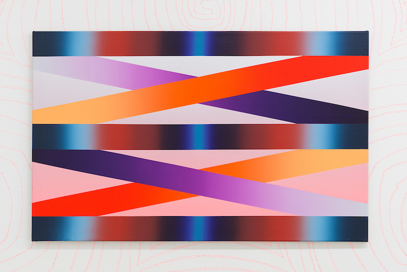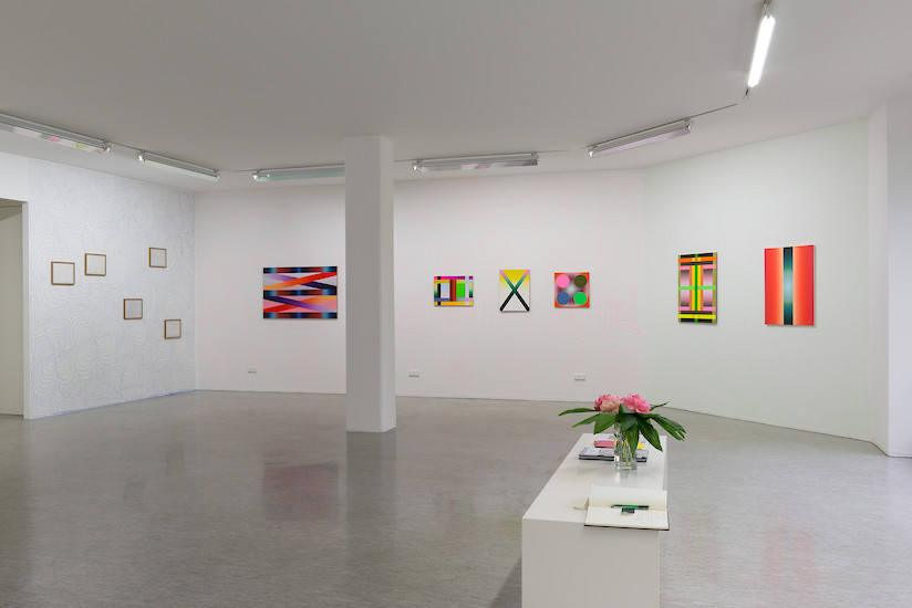 Die neuesten Bilder des Freiburger Malers werden in einer eigens vom Künstler entwickelten Raumsituation zu sehen sein. Ben Hübsch (geb. 1963) lotet malerisch in unverkennbarer Weise seit Jahren die Grenzen formaler Strenge und farbkräftiger Bildgenese aus. „Wo die formale Konstruktion Reduktion, Einfachheit und Überschaubarkeit anbietet, signalisiert die Farbe vitlalen Überschwang mit leise anarchischen Tendenzen“ so Stefan Berg in seinem grandiosen Text zu den Bildern von Ben Hübsch. Der Künstler wird in der Ausstellung „Auf einer Linie“ die Wände der Galerie als Display in überraschender Weise für die Präsentation ganz neuer Bilder bearbeiten.
