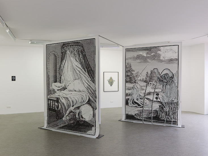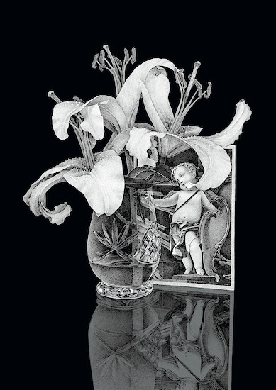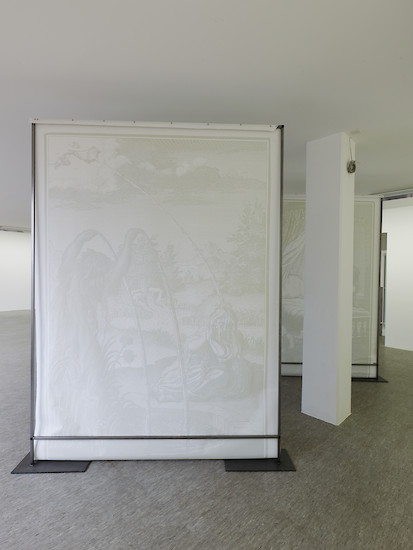 Sofie Bird Møller entkleidet vorgefundene, historische Stiche ihrer figürlichen Darstellung und überführt den Ewigkeitsanspruch klassischer Bildwerke damit in eine unbestimmte Zeitlichkeit. Møller nimmt in einem ersten Schritt durch gezielte Übermalungen Sichtbares weg um im Anschluss die so geschaffenen Bildlücken mit einer an die handwerkliche Meisterschaft des Ausgangsbildes rührenden Sorgfalt wieder zu verschließen. Die menschliche Figur wird damit zwar vordergründig aus dem Bild eliminiert, Arbeitsspuren und subtile Farbverschiebungen lassen aber die Retuschen erkennen und das fragmentarisch Weggenommene als überlagernde Ebene in geisterhafter Transparenz erscheinen.